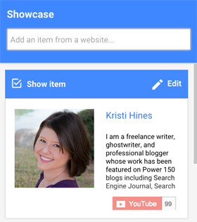 Showcase items from websites in your hangout.